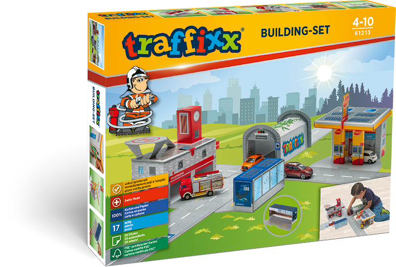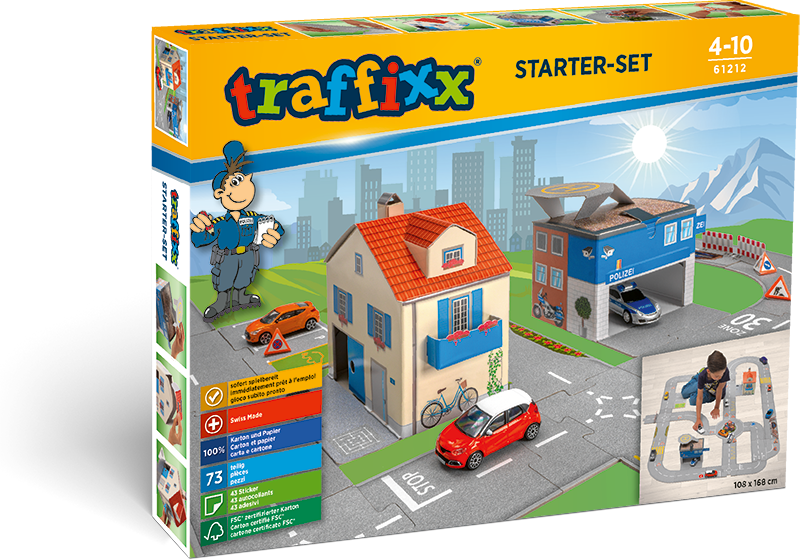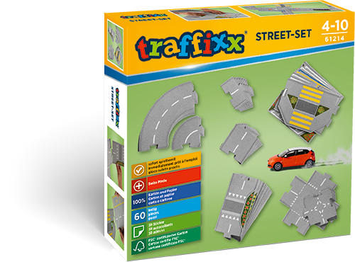 Traffixx bietet grenzenlose Kombinatonsmöglichkeiten und langanhaltenden Spielspass. Alle Strassen- und Gebäudeelemente lassen sich ganz einfach und ohne Verwendung von Klebstoff zusammenstecken. So macht Spielen garantiert Freude!